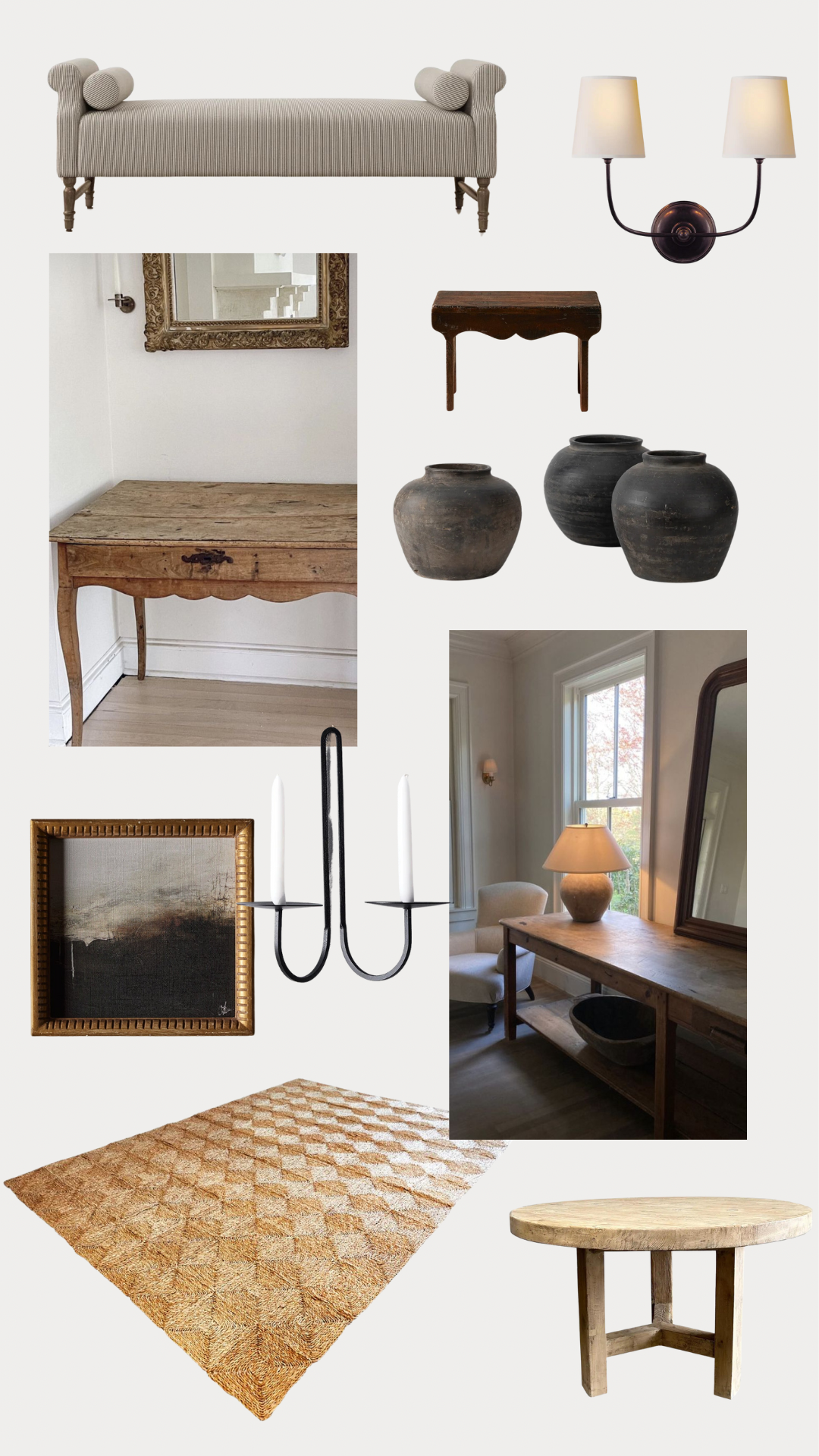 In a design project, there are hundreds (and sometimes thousands) of selections to review, maintain, and approve. The most important thing about each of those decisions is to create cohesiveness throughout the home. What better way to ensure this than consistently referencing your “guiding compass” throughout the entire process, which is why mood boards are so important! We create a mood board for each project that our clients approve and use to guide the direction. The mood boards for the AGH Country House project were as difficult as it was a creative breeze. I knew what I wanted, but designing for yourself can be the toughest challenge of them all. There are so many options and personal notes to keep track of. This home is going to carry a European aesthetic and house all of my favorite patina-ed finishes and natural materials.