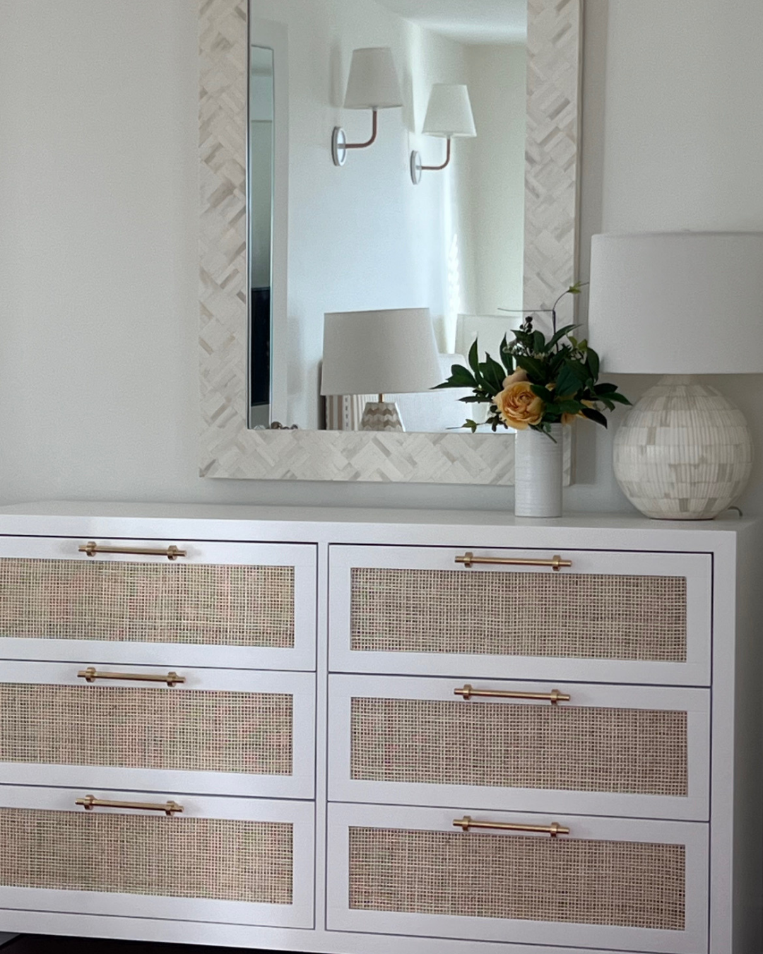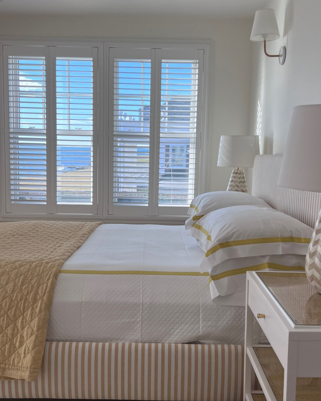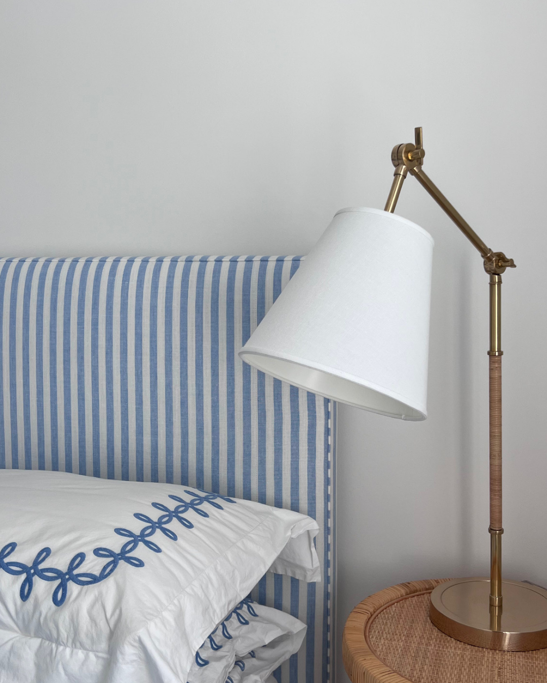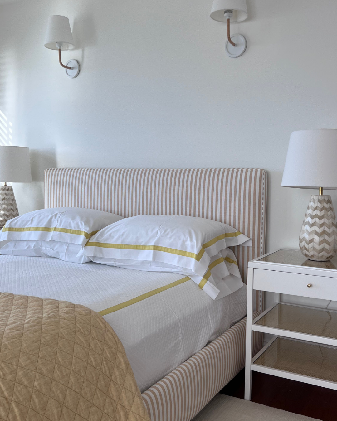 Portside: Bedrooms Mar 9 Written By Chelsea Wade Inside Portside, a whole-home design project inside a casual coastal contemporary home on Long Island Sound.TOUR PORTSIDEBedroom No. 2 Before + In-Progress Bedroom No. 3 Before + In-Progress Bedroom No. 4 Bedroom No. 5 Before + In-Progress Shop Portside: Bedrooms Octavia Bed- Perennials Pinstripe, Sand Macati Accent Table Carla Dresser Irving Table Lamp Burma Pillow Cover, Raffia Malibu Mirror Octavia Bed- Raffia, Navy Canaan Side Table Majorca Dresser Dorset Bench Georgia Table Lamp Burma Bolster Pillow Cover, Summer Blue Octavia Bed- Bengal Stripe, Hydrangea Rattan Side Table Isla Dresser Balboa Rattan Wall Mirror Larkspur Task Table Lamp Brunschwig & Fils Talvera Bolster Pillow Cover Octavia Bed- Bengal Stripe, Yellow Canaan Side Table Xanadu Bench Westerly Bedside Table Lamp Burma Pillow Cover, Gold Larsen Mirror Lafayette Rug Larkspur Single Sconce Larkspur Single Sconce Custom Prints SHOP ALL Projects Chelsea Wade