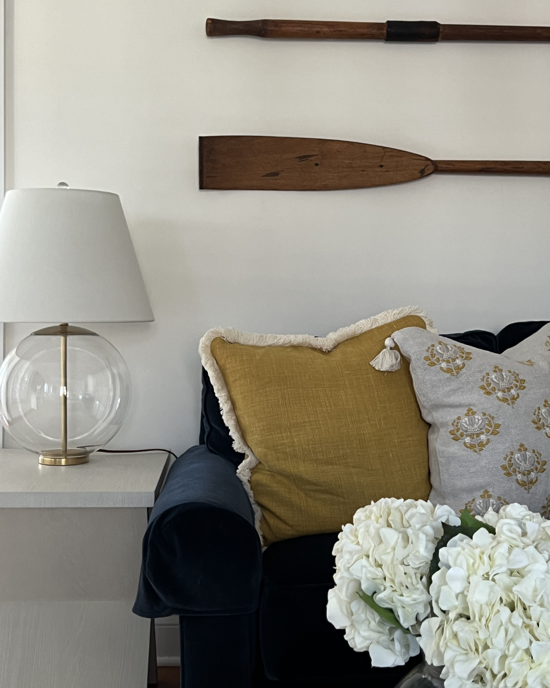 Portside: Den Mar 5 Written By Chelsea Wade Inside Portside, a whole-home design project inside a casual coastal contemporary home on Long Island Sound.TOUR PORTSIDE Before + In-Progress Shop Portside: Den Dillon Low Bookcase Brynlee Woven Ottoman Hunter Side Table Georgia Table Lamp Southampton Dining Table Harrison Round Stool Bowden Pillow Cover- Yarrow Kemp Pillow Cover Cayman Seagrass Vessel Candle Bowl Navy Dipped Vase Starburst Pillow Cover SHOP ALL Projects Chelsea Wade
